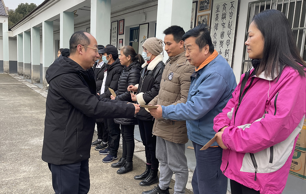 春节将至,员工的冷暖,后勤党组织更是惦挂在心头。2022年1月7日,后勤党总支书记杨银忠、处长高凯、分工会主席马祥甸及委员一行,带着后勤党总支浓浓的关怀之情,捎着新春的祝福,向来自公寓服务中心、饮食服务中心、场馆服务中心、维修科、基建科的 11名员工给予节日慰问。