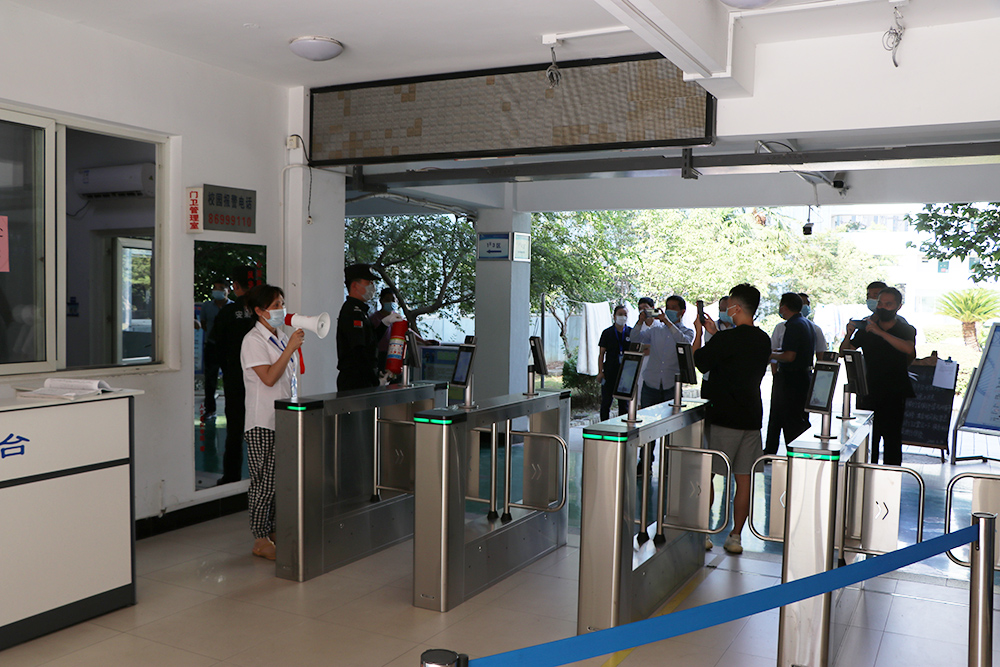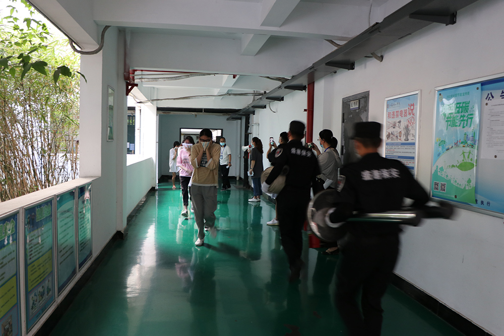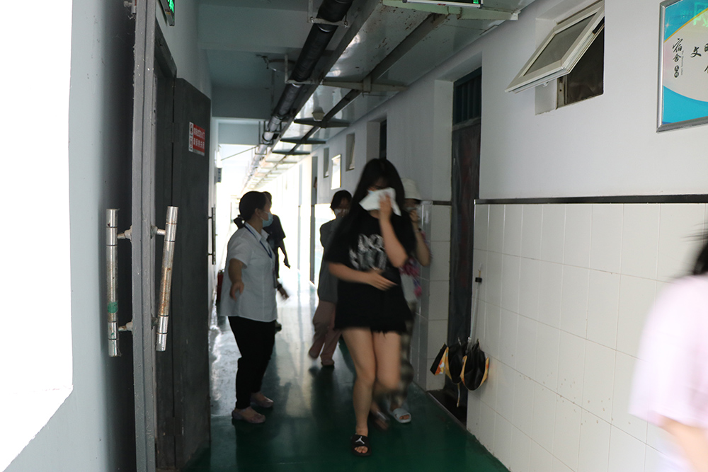 本次演练场景模拟为1#学生公寓2区106宿舍因用电不当引发火情,门卫管理员接警后立即前往甄别确定,同时报告保卫处,报告值班领导,并迅速开展火灾初期扑救与疏散。后勤领导小组接报警后立即启动突发火灾应急预案。应急处置组、疏散引导组、人员救护组、善后处置组等在内的各行动小组快速投入行动,严格按照程序有序完成火情报告、初期火灾扑灭、人员疏散救护、现场清理等工作。