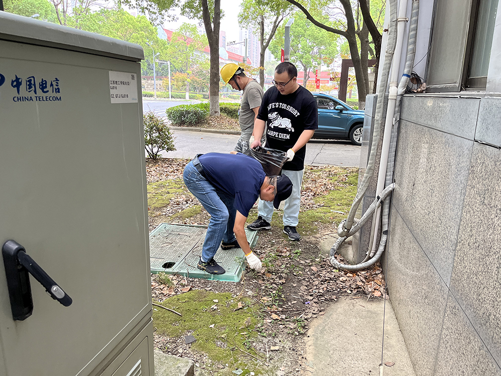 全体人员以支部为单位分成三组,前往事先划分好的活动区域。清捡垃圾时,大家认真对待,俯下身、弯下腰、认真捡、彻底清,对楼宇周边、道路两侧及绿化带内的白色垃圾、废纸、易拉罐、烟头等进行了集中清理。经过一小时多的奋战,校园环境得到了进一步优化和改善。