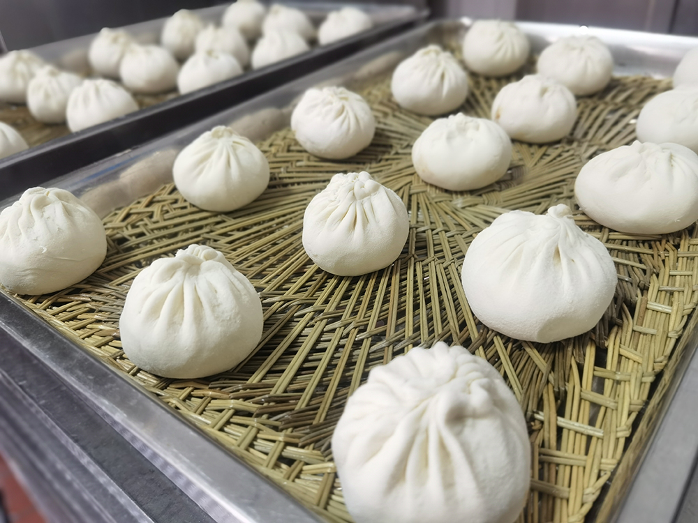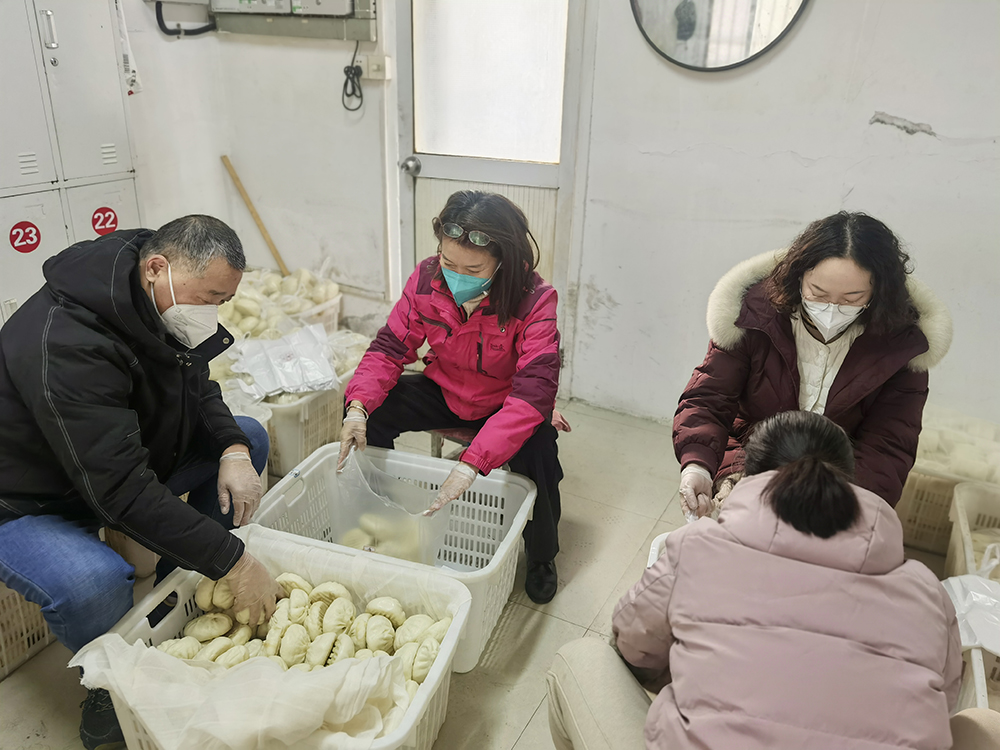 放假前夕,饮食服务中心早早地把为老师们预订包子、熟菜的服务通知挂在网站上。学生一放假,点心间师傅们已经热火朝天地忙碌起来,和面、发面、包馅、醒发、蒸制……师傅们分工明确,各司其职,随后,一笼笼新鲜的包子展现在大家面前,中心管理人员也齐上阵,分类、点数、装袋、贴标签、分发摆放……大家相互配合,圆满完成每天的包子加工任务。