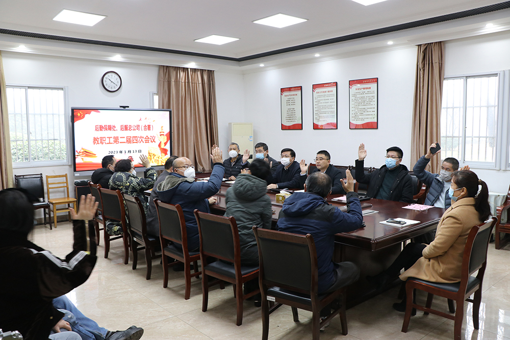 处长、总经理蒋益锋以《后以身先勤于服务,深化改革强化保障》为主题,从建设“品质后勤、智慧后勤、绿色后勤、育人后勤、开放后勤、廉洁后勤”等方面总结了2022年完成的主要工作和取得的主要成绩。同时,部署了2023年重点工作,报告了2022年度财务状况和年终分配方案等。