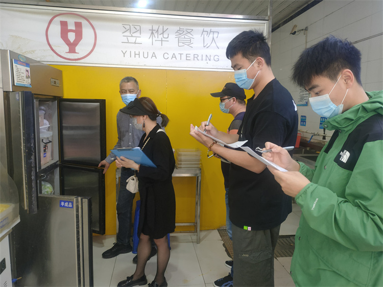 检查小组仔细检查了各餐厅日常工作台账、食品留样管理、餐具消毒;食品原料存放区、清洗区、加工区的卫生情况;冰箱内食品原料分类管理、定位存放;窗口工作人员佩戴口罩、微笑服务以及餐厅消防安全等情况。检查人员对食堂在食品安全及卫生管理方面的整体工作给予了肯定,针对检查中存在的问题,现场提出整改意见,并进行了量化考核打分。