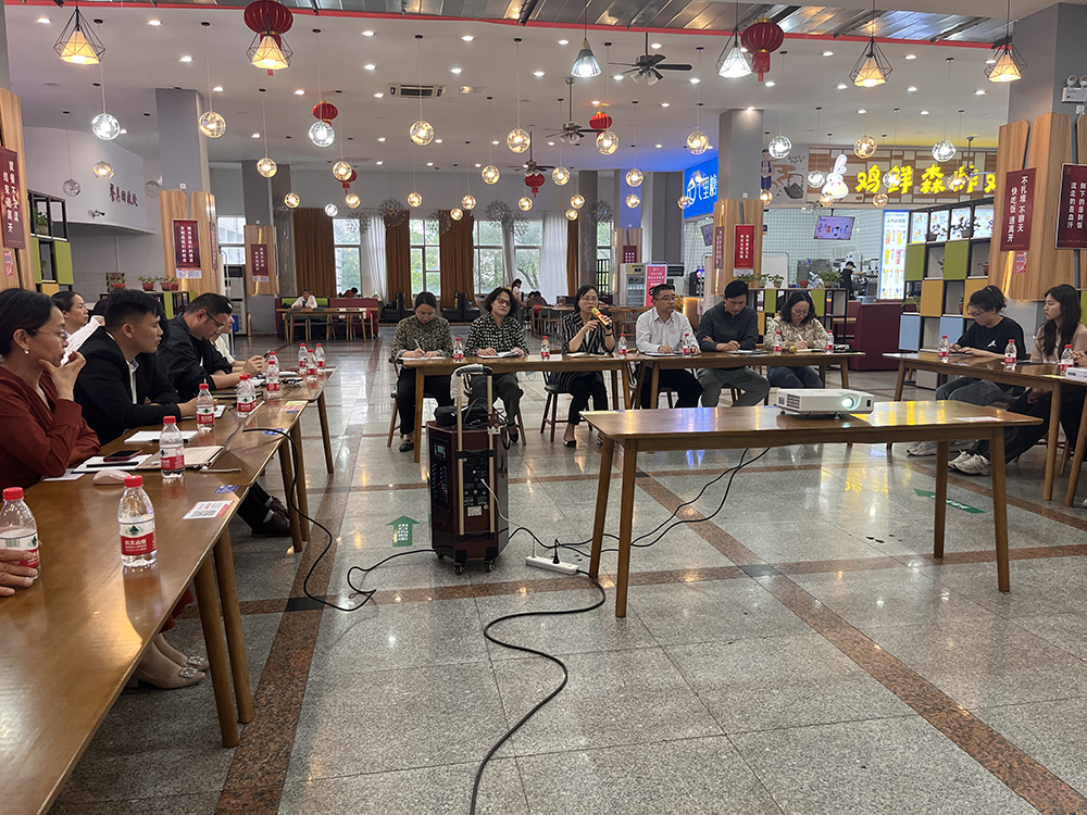 蒋益锋指出,饮食服务中心应聚焦问题抓整改,举一反三促落实。他表示,要采取积极的措施,执行“主动让利学生”的食堂菜品降价方案,确保降价不降质量和分量;食品安全工作从源头抓起,实现原材料集中统一采购,不断优化采购方案,有效促进原材料价格更低,品质更优。同时,他希望与会学生代表成为广大学生与后勤沟通的桥梁和纽带,积极参与食堂的民主监督,为共建美好餐饮新生态建言献策。
