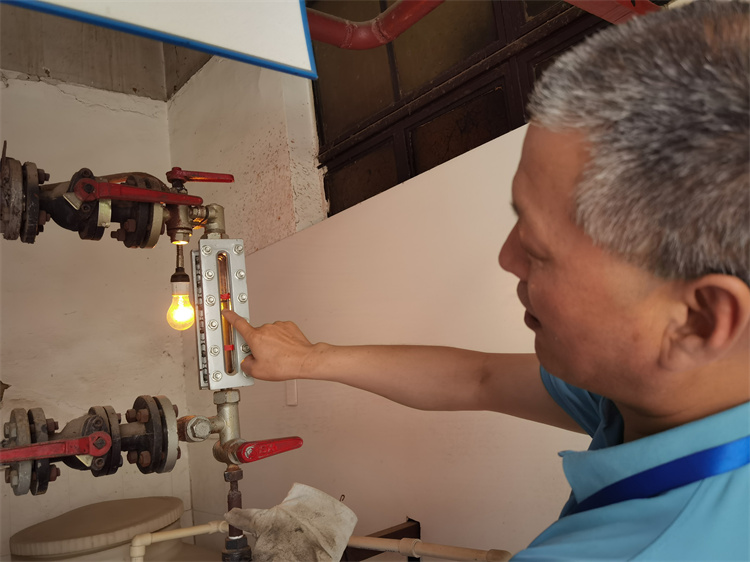 本次演练以模拟锅炉缺水为主题。在演练过程中,锅炉操作工在对锅炉进行巡检时,发现锅炉水位表看不到水位且低水位指示亮起红灯。操作工立即做停炉处理并向中心应急小组组长汇报,同时联系锅炉维保单位。组长立即启动应急响应,安排专人疏散人群并设置安全距离的隔离带。锅炉工首先通过吸水检查水位后确定为轻微缺水,随后进行“叫水”操作,待水位表出现水位的同时水位计、压力表、燃料气压力条件都恢复正常。维保单位人员接到电话后迅速赶到锅炉房查看情况 ,询问基本情况后开展检验,检验后发现已经具备开炉条件,经组长同意后缓慢的启动锅炉的燃烧准备,使其继续投入使用。