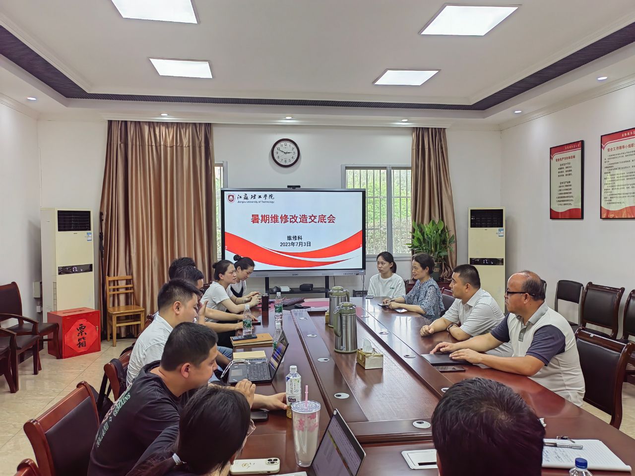 会上,维修科科长何宁军汇报了暑期维修改造项目的具体情况,并就工程的施工进度质量等方面提出了具体要求。随后,双方就具体维修项目事宜展开讨论。