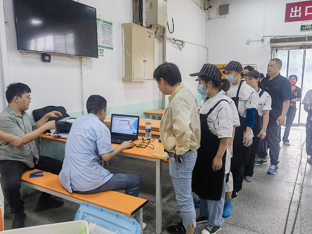 9月3日,常州市鼎武医院专业人员早早的到达了北苑食堂,为校内学生食堂及协作经营单位的150余名餐饮从业人员分别进行内科、皮肤、DR胸片、肠检、ALT、甲/戊肝抗体等项目的检查;同时,通过体检可以达到“早诊断、早预防、早治疗”,让员工以健康的身体投入到我校餐饮服务工作中。