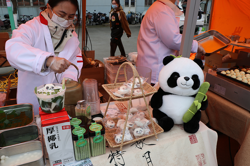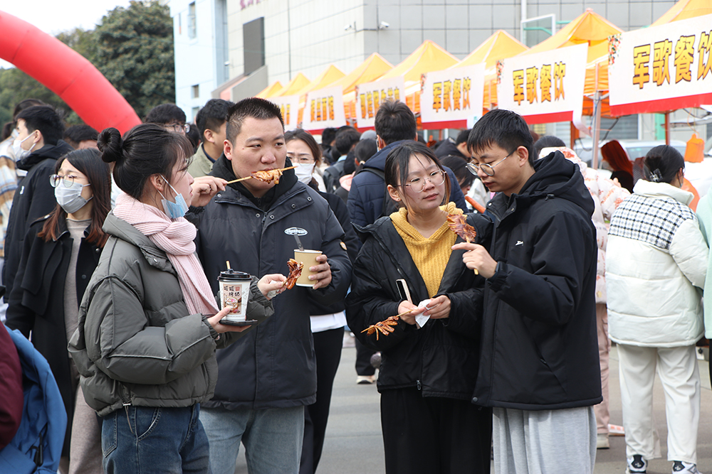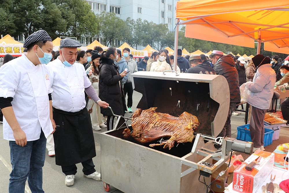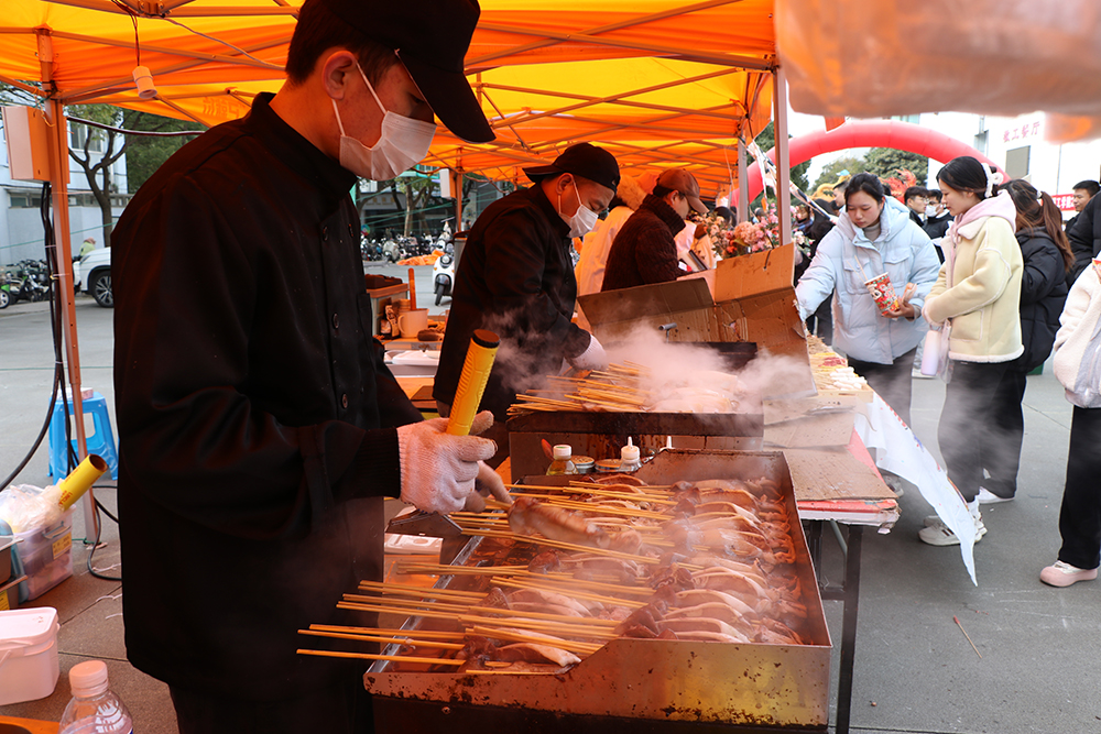 在教工餐厅外广场上的校园美食节现场,共有35个展位展示特色美食。现场人头攒动,非遗美食、特色农副食品、网红小吃等一应俱全,还有烤全羊、蛋糕免费品尝,吸引了数千名师生热情参与。