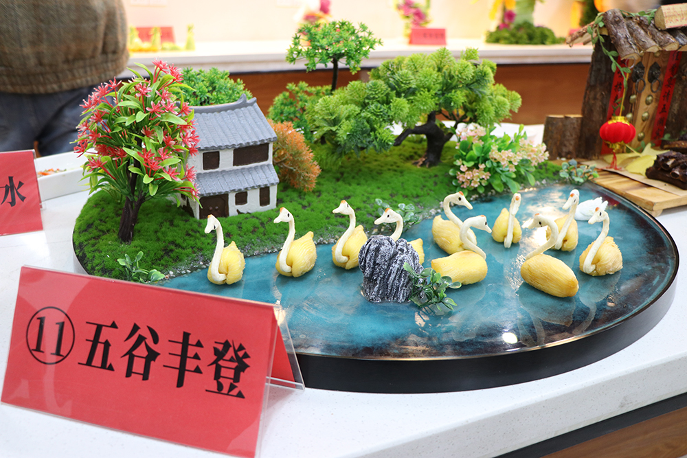 本次比赛分为专业组和业余组两个组别。专业组选手由校内各餐饮单位12名厨师、10名点心师组成,分别比试特色、白案、红案三个品种。特色品种比赛现场,自营食堂和协作单位各显其能,30项特色创新菜品争奇斗艳、夺人眼球。红案比赛品种为青椒土豆丝、糖醋里脊两道指定热菜。白案比赛品种为鲜肉中包。业余组选手由校内8名教职工和8名学生组成,比赛品种为番茄炒蛋和自选特色家乡菜。比赛过程中,大家严格按照比赛规程和操作规范,全身心投入,匠心独具,纷纷亮出拿手绝活,通过娴熟精巧的刀工、出色的食材搭配、准确快速的调味制作,完成了一道道色香味俱全的精品菜肴。评委从参赛作品的制作工艺、厨艺技能、形态色泽、造型美观等方面进行了认真细致的评选,分别评出五个组别的一、二、三等奖。