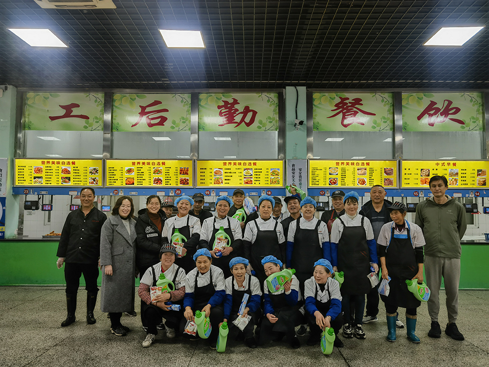 12月11日上午,饮食服务中心经理吕璟带领管理人员来到各食堂,为一线员工送上一份冬日慰问和贴心关怀。吕璟暖心叮嘱大家,天气寒冷,注意保暖,要求相关食堂在保证安全生产的同时,合理安排降温天气下的安全防护工作。