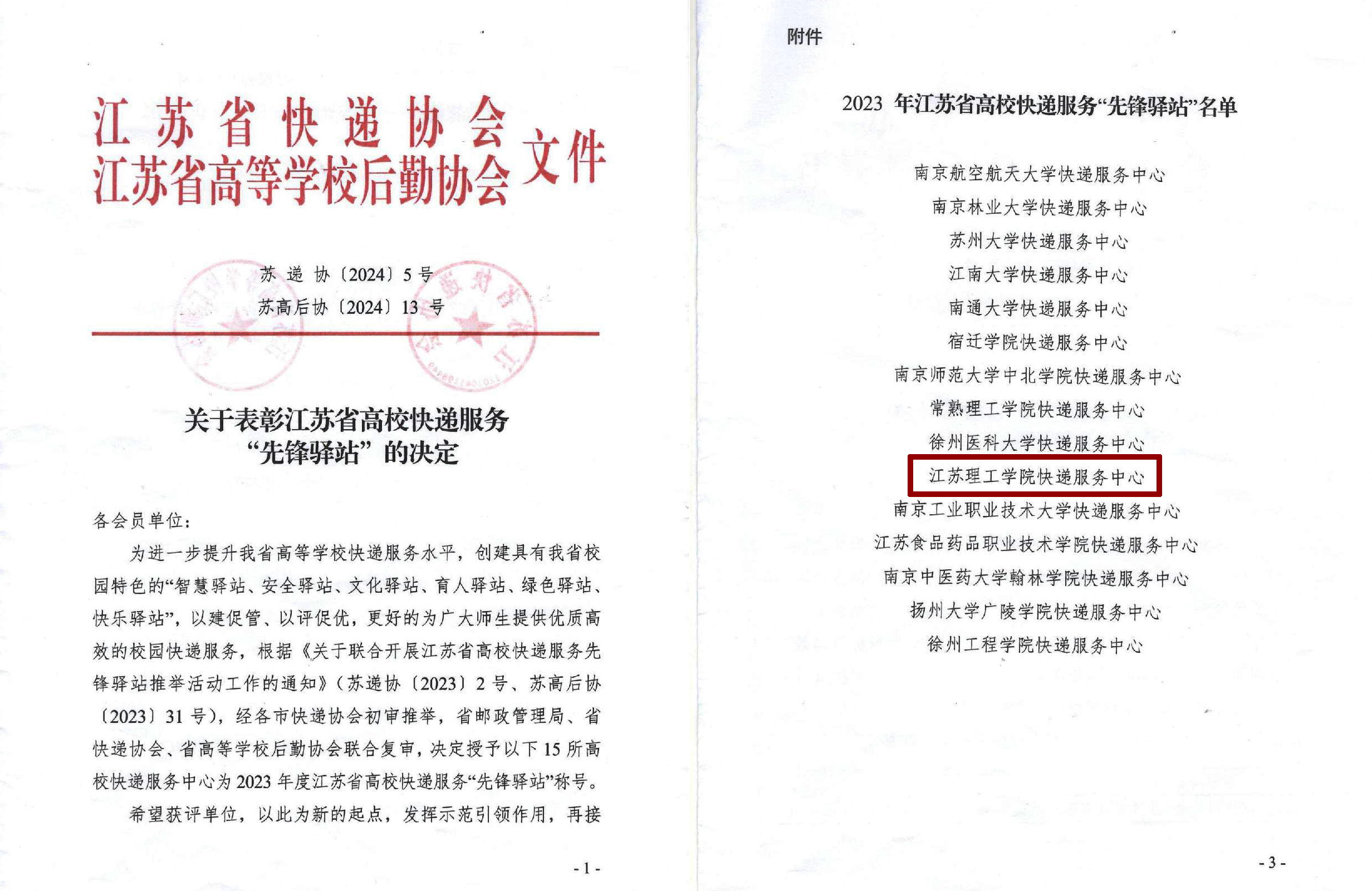 5月21日,江苏省高等学校快递服务现场交流会暨“先锋驿站”表彰大会在南京召开,会上宣读了《关于表彰江苏省高校快递服务“先锋驿站”的决定》获悉,我校荣获江苏省首届高校快递服务“先锋驿站”称号(全省仅15所高校获此殊荣,在常高校唯一入选)。