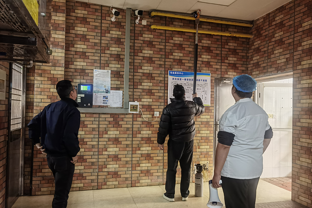 为加强学校食堂消防安全管理,提升员工应对燃气泄漏的应急处置与自救防范能力,12月25日下午,饮食服务中心在西苑食堂组织开展了消防疏散逃生演练。燃气维保单位人员、饮食服务中心管理人员及食堂员工共同参与演练,后勤保障处副处长陈纲、质量监控与培训科科长丁静到场观摩指导。