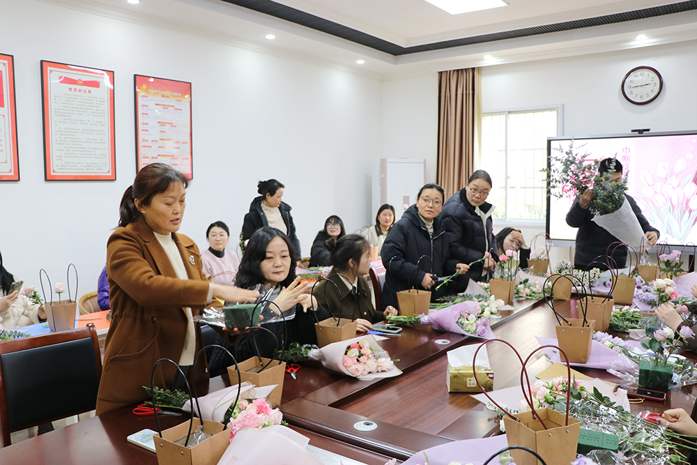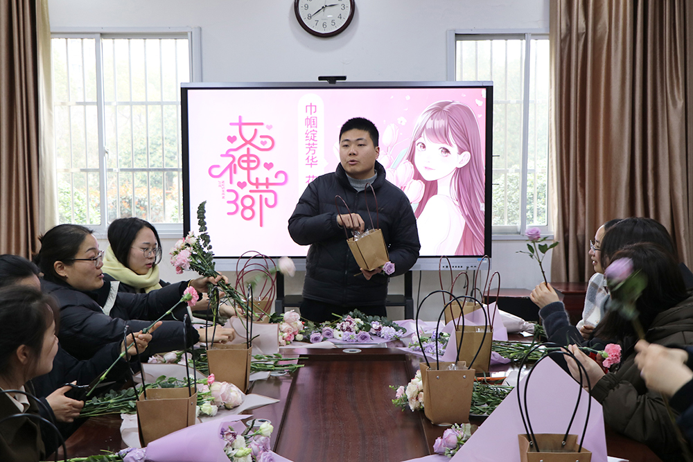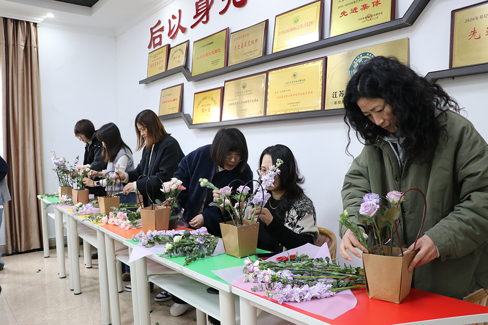 为庆祝第116个“三八”国际妇女节,丰富后勤女职工精神文化生活,3月6日下午,后勤分会在一德楼123会议室开展女职工插花主题活动。