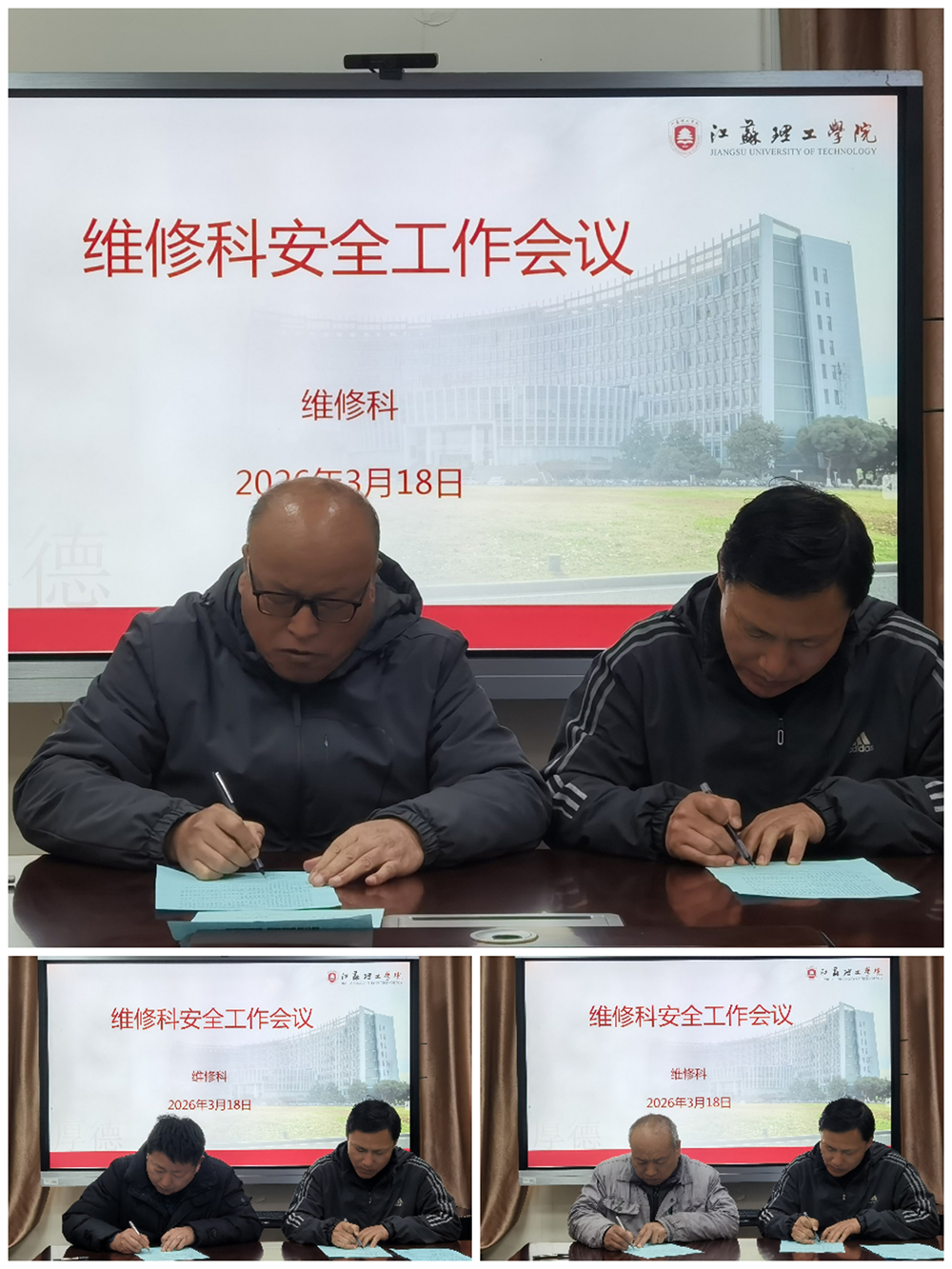 会上,陈扬领学《江苏理工学院动火作业管理办法》,细致解读动火作业审批流程、现场管控等关键要求;何宁军分享学习习近平总书记关于安全生产工作的重要指示精神的心得体会。随后,与会人员逐级签订《安全生产管理责任书》。