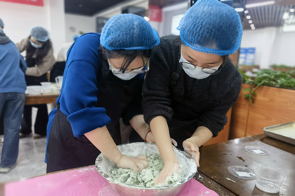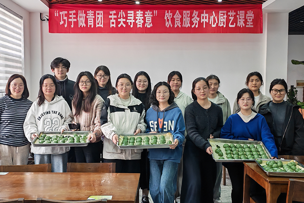 4月1日下午,饮食服务中心在教工餐厅举办“巧手做青团,舌尖寻春意”厨艺课堂活动,吸引15名学生参与。