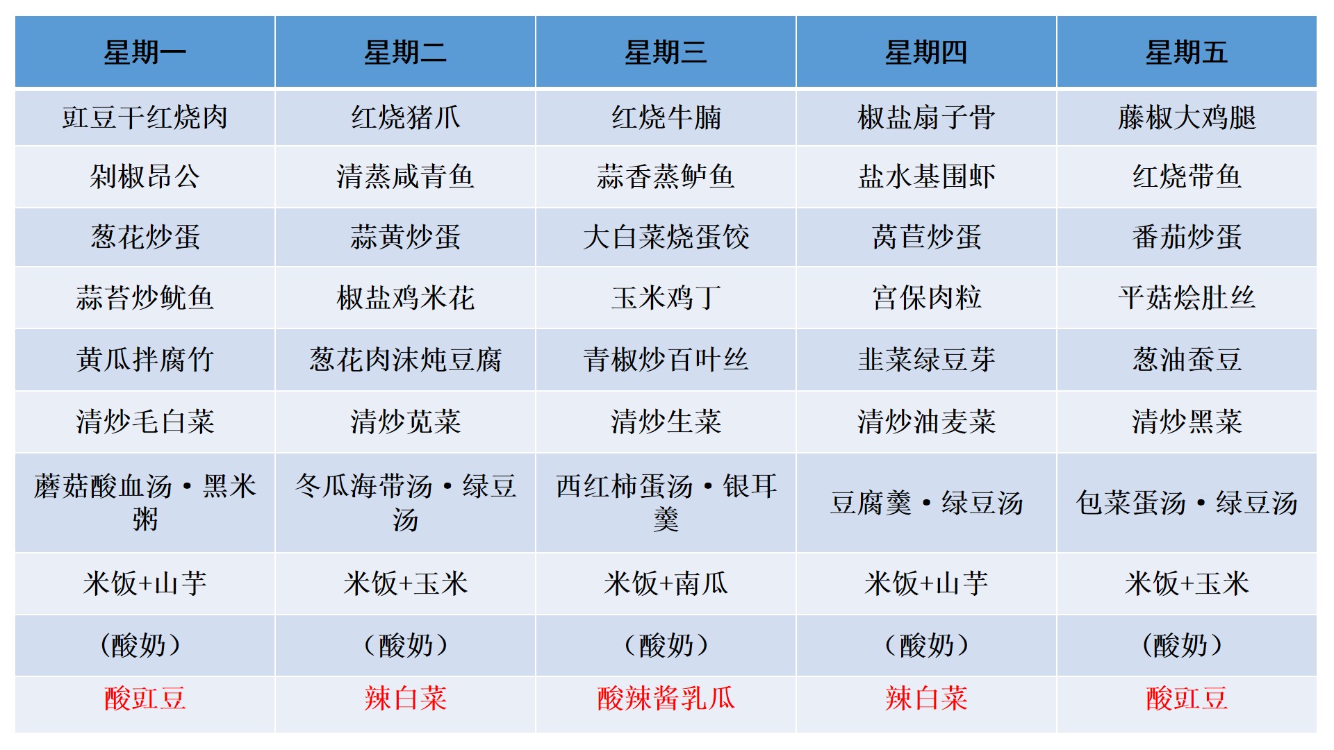 教工食堂周菜谱(4.20-4.24)